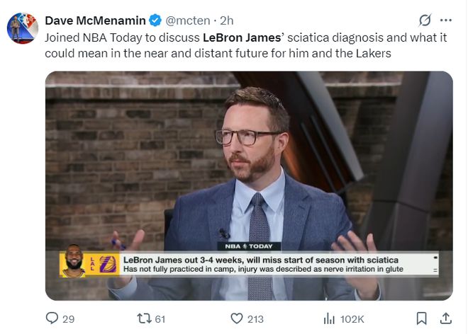 因为詹姆斯的伤病问题,ESPN湖人记者戴夫-麦克梅纳明在播客中也分析了詹姆斯的伤情,不过他还谈到了此次受伤对于詹姆斯来说可能发生的变化: